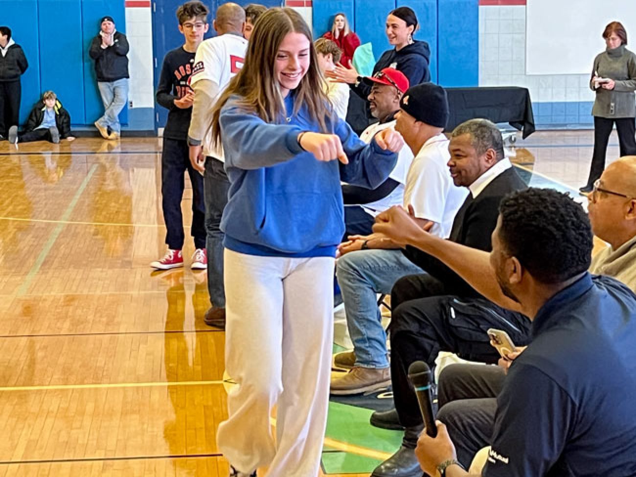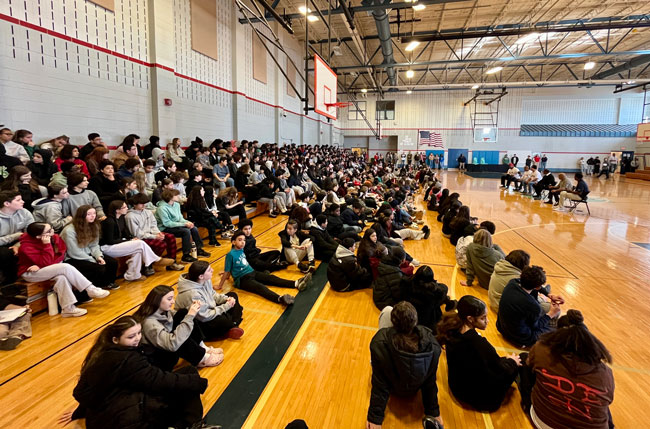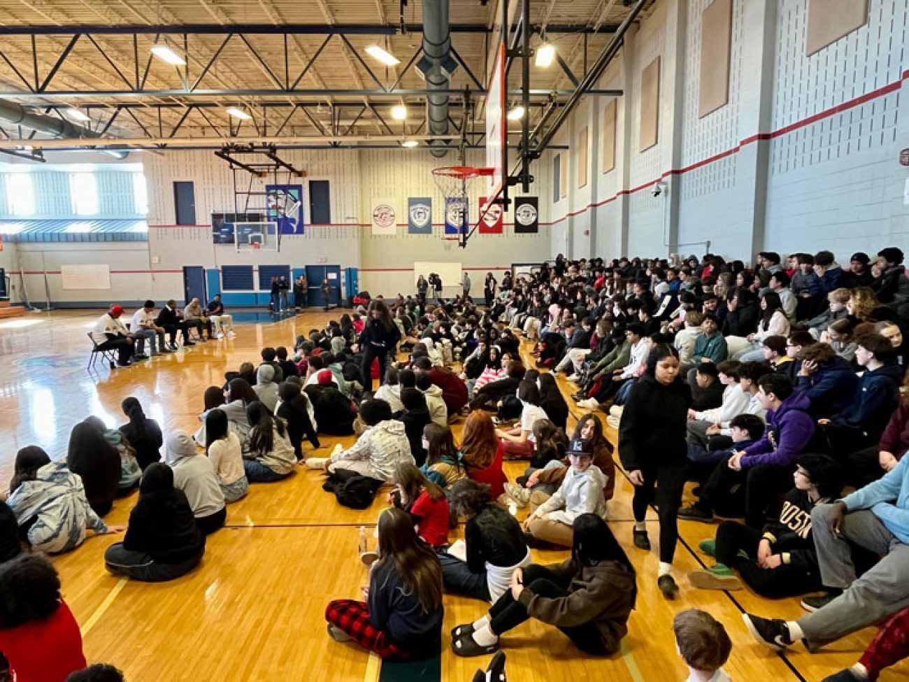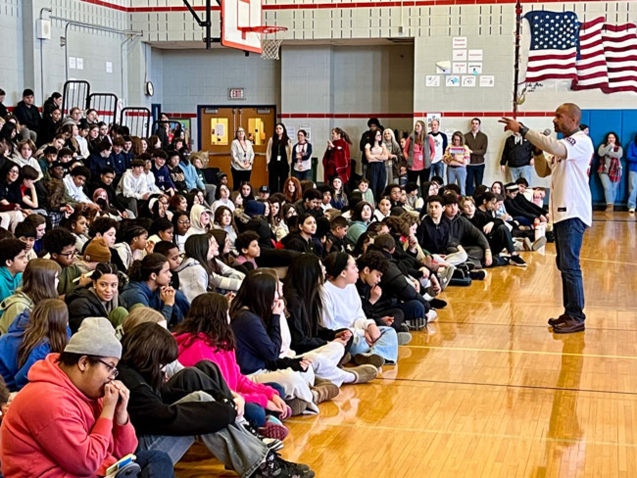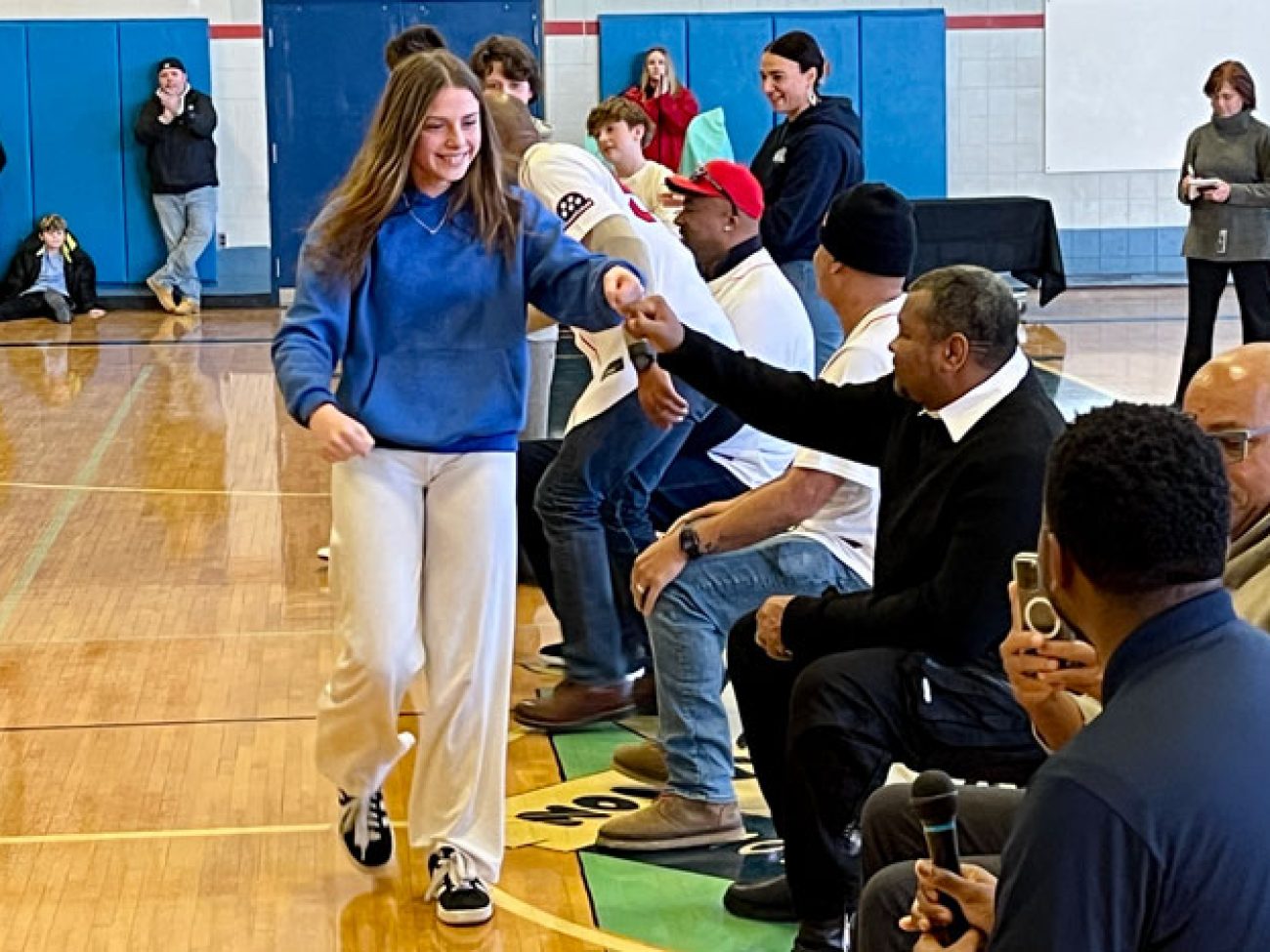 The event closed with the reading of the Dick Flavin poem titled ‘Jackie Robinson’ by eighth grader Jose Toribo Francisco. Afterward, students were introduced to Red Sox mascots Wally and Tessie, and took photos of two of the Sox World Series trophies.